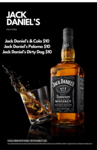 That’s right — while they’re spinning vinyl, you’ll be creating colorful chaos. Free record painting goes down from 9pm-11:30pm, so come early and get creative! The Jack crew will also be handing out free merch all night, and we’ll be featuring a special discounted Jack Daniel’s menu with deals on your favorite drinks.